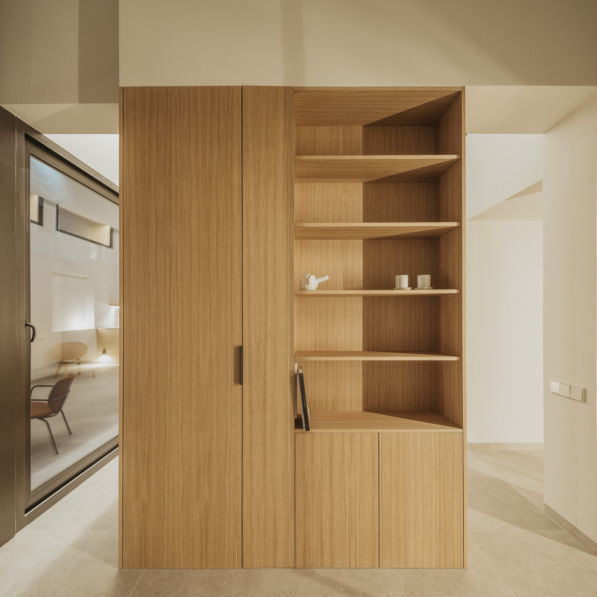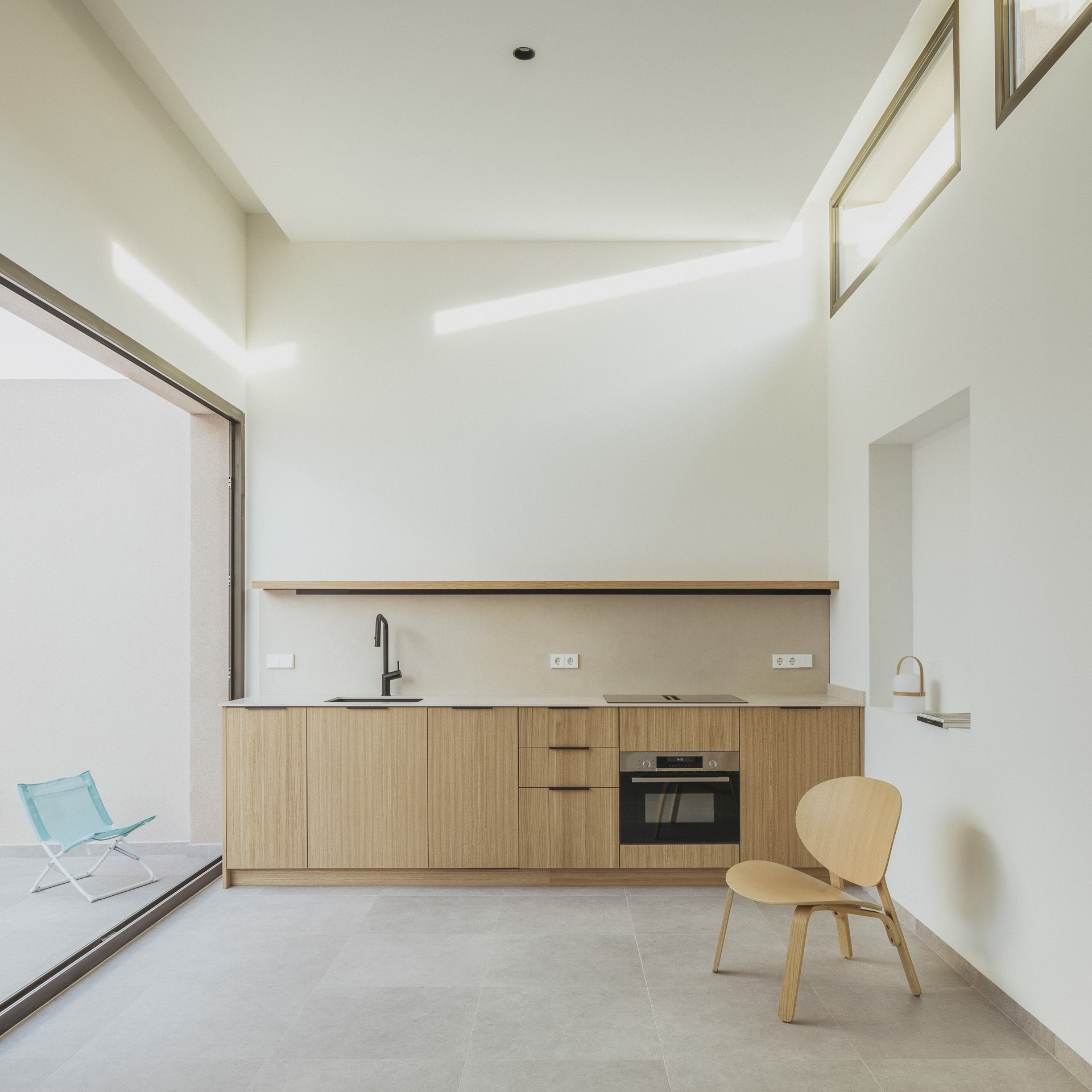 Cada espacio se define no solo por su función, sino por la atmósfera que genera. La vivienda se entiende como un organismo que responde a la orientación, a la incidencia solar y al modo de habitar mediterráneo, donde el tiempo, la sombra y el silencio adquieren valor arquitectónico.